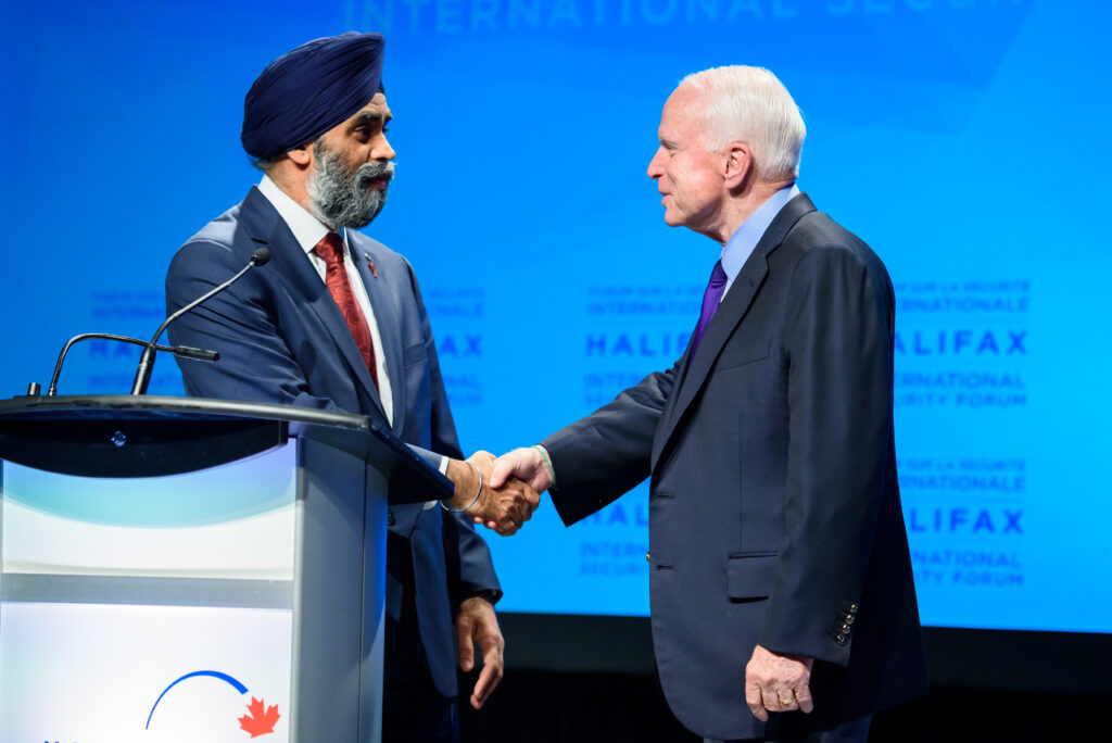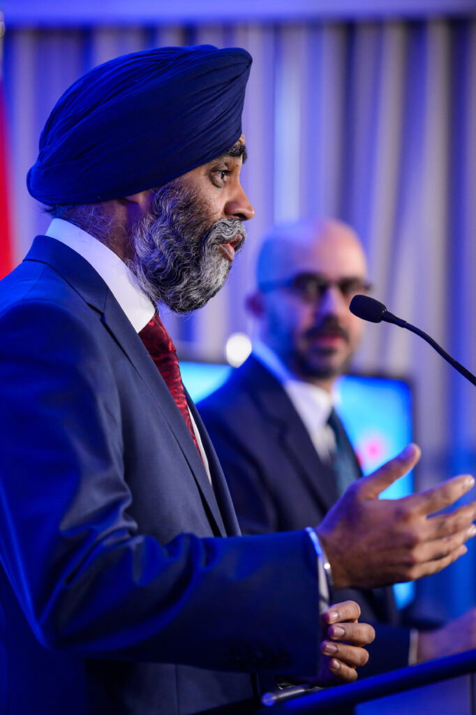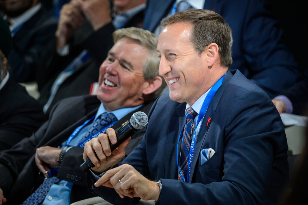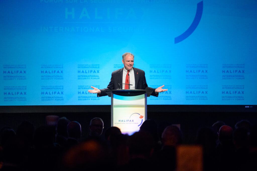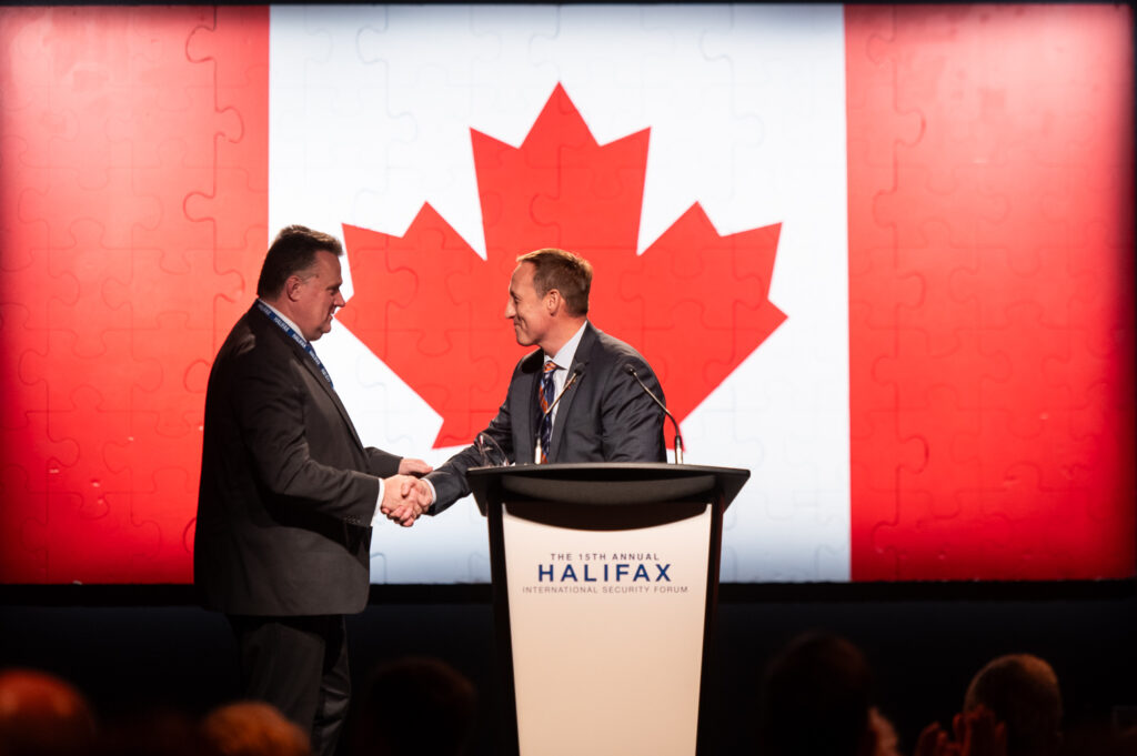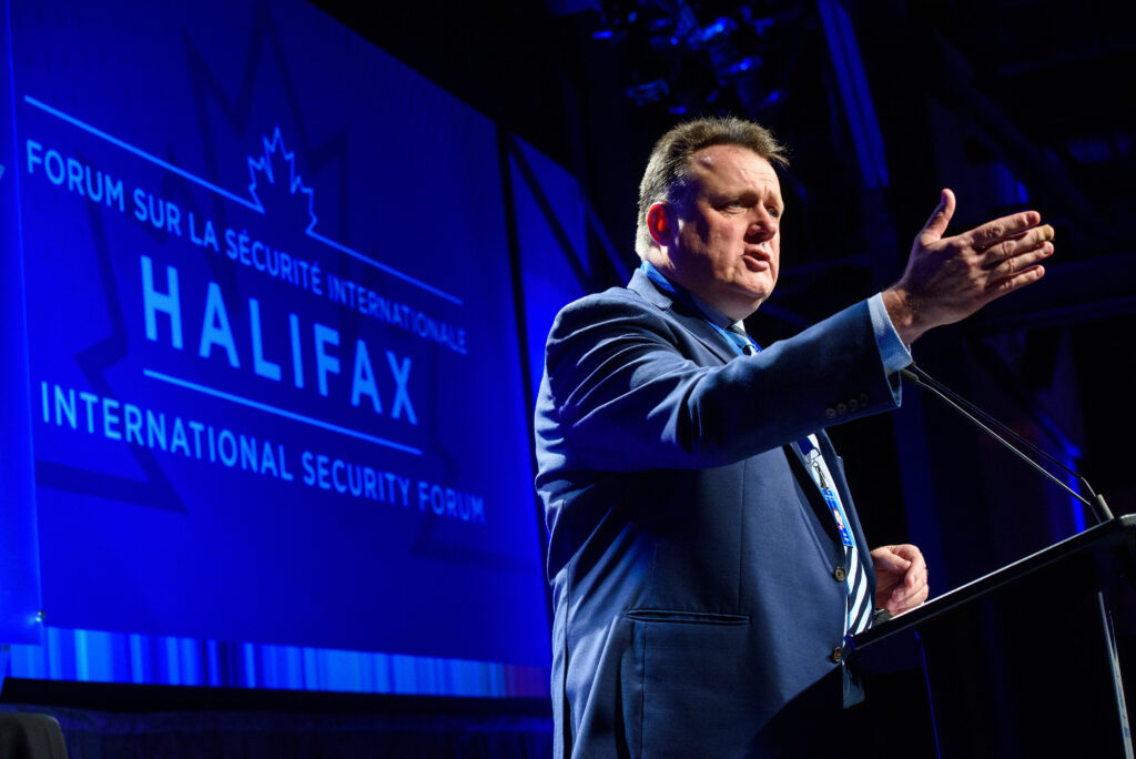 Mayor Mike Savage stands at podium for an event in Halifax